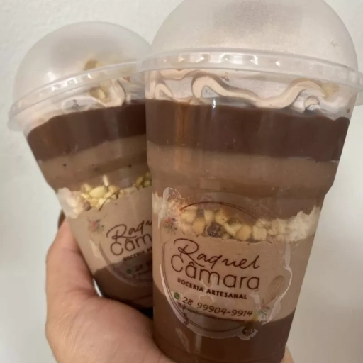 Copo composto por creme de chocolate nobre, mousse de chocolate, amendoim, mousse de nutella, e bombom ferrero.