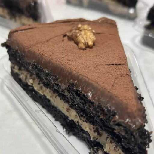 Bolo de chocolate black recheado de nozes com café.