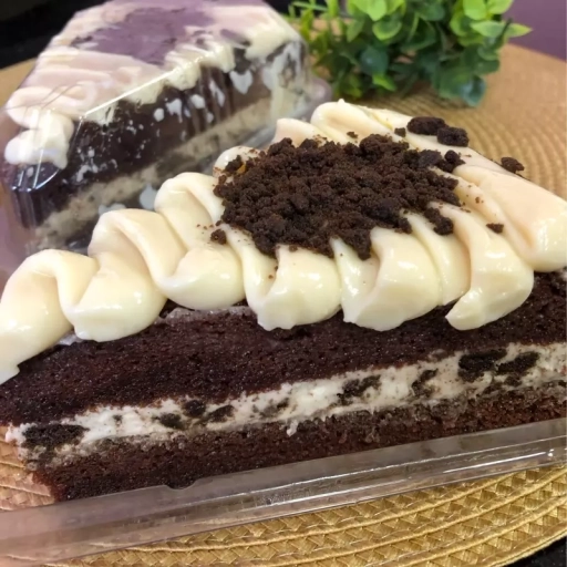Fatia de chocolate com mousse de Oreo cobertura de ninho