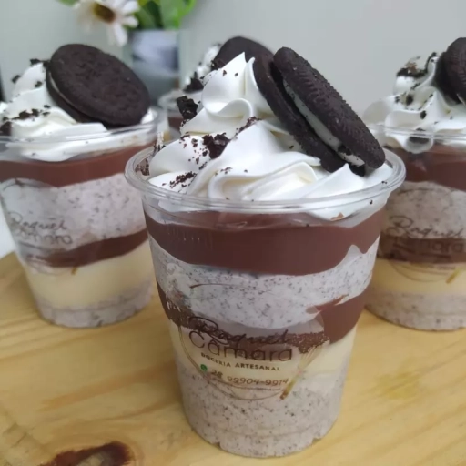 Copo composto por creme de ninho, brigadeiro cremoso, mousse de Oreo, chantininho e biscoito Oreo. Copo pesando 200gr.