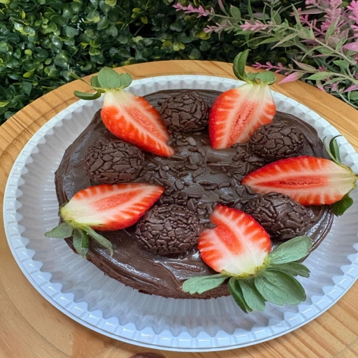 Fatia de brigadeiro com morangos